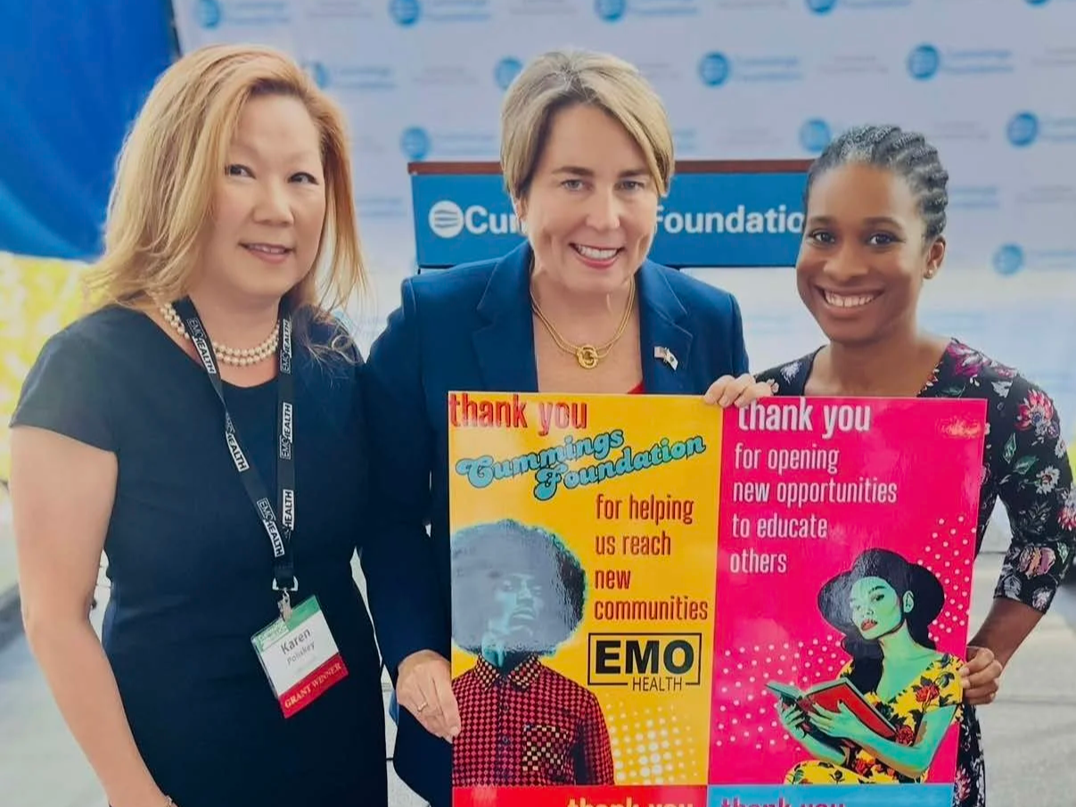 Massachusetts Governor Maura Healey honors EMO Health employees Karen Poliskey and Elthea Sykes